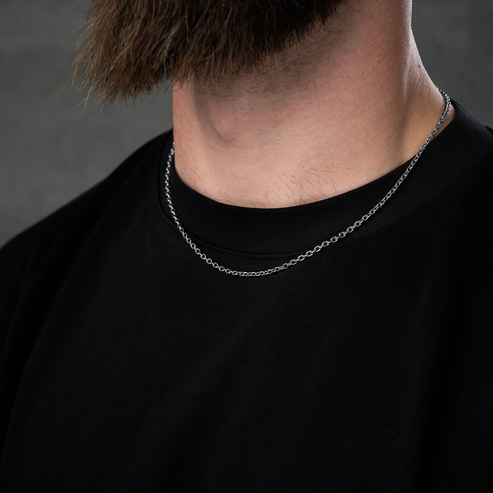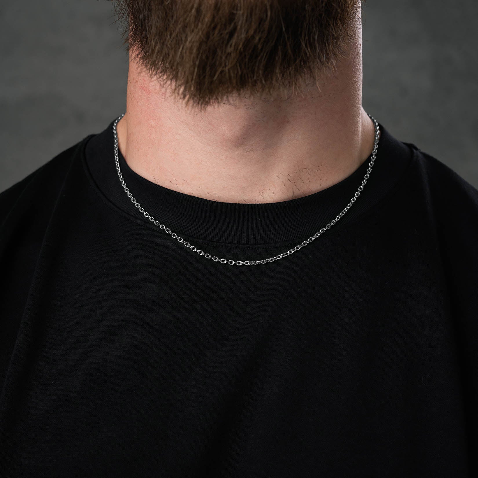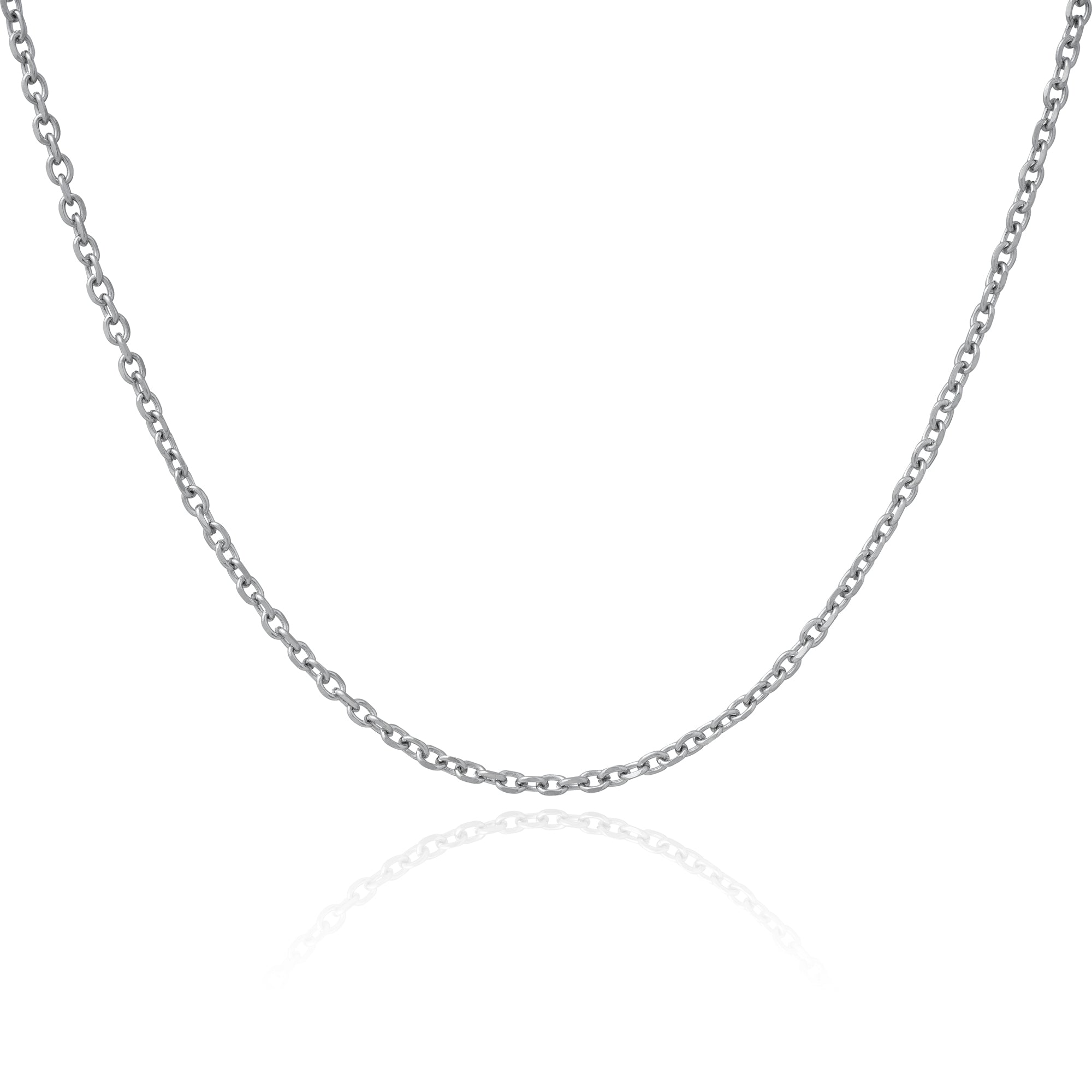 A thin simple chain is versatile and elegant, suiting a wide range of events and outfits. Featuring 3mm wide oval cable links with beveled edges.