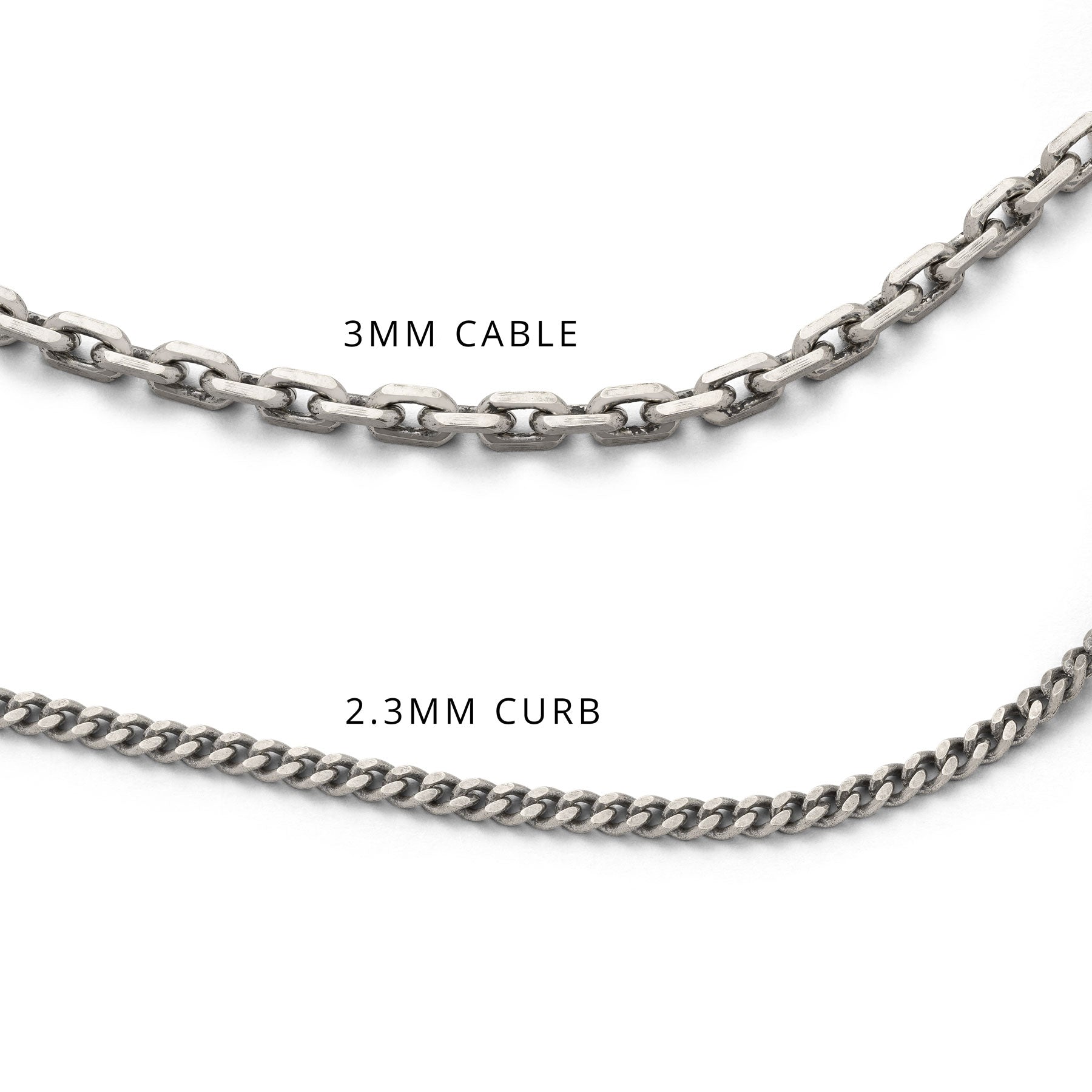 | Size | 3mm Cable, 2.3mm Curb, Pendant Only, 45cm/18", 50cm/20", 55cm/22", 3mm Cable, 2.3mm Curb, Pendant Only, 45cm/18", 50cm/20", 55cm/22" |