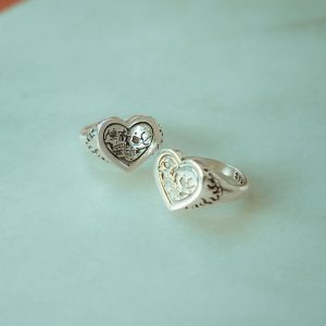 Love and death collide in our skull heart heart ring design.