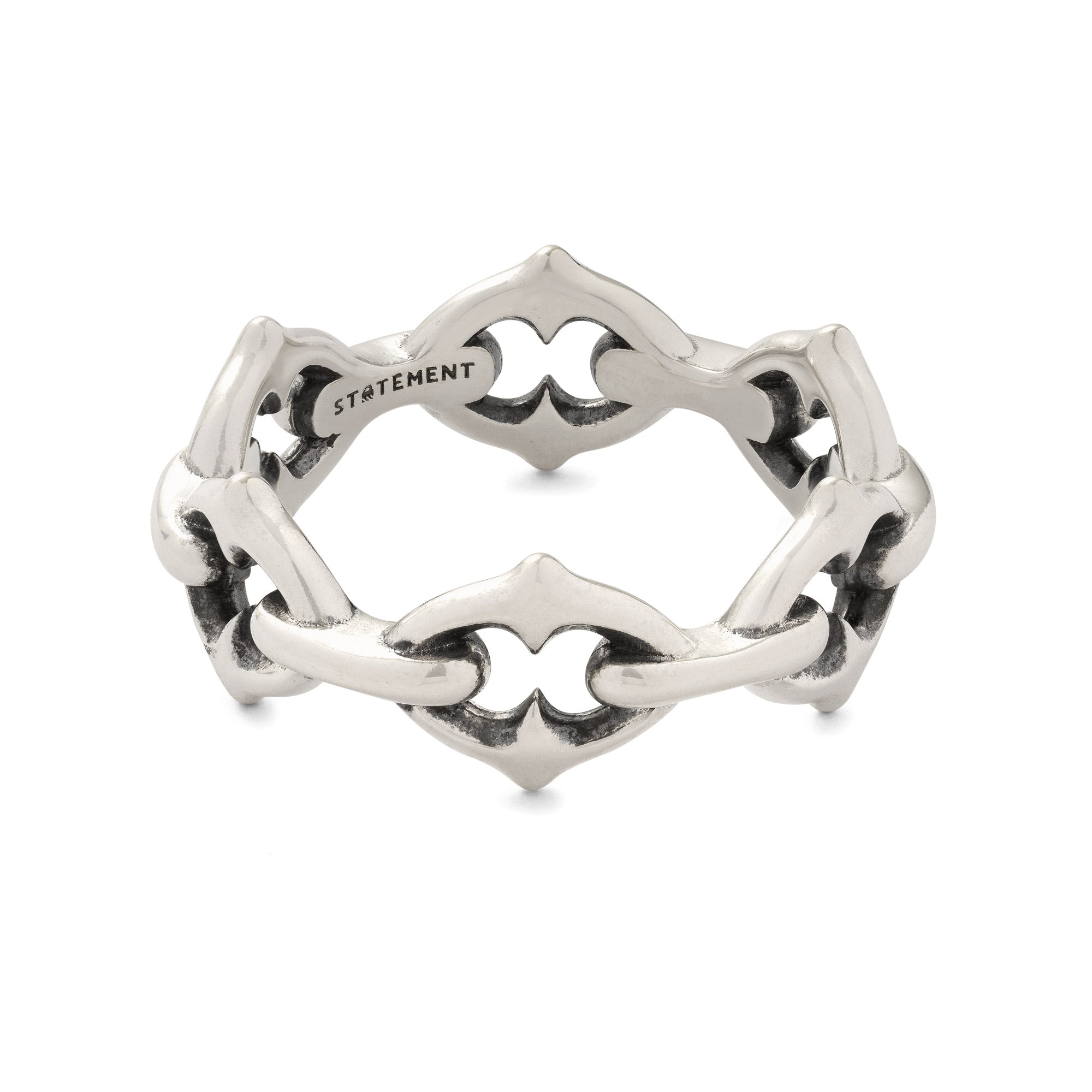 The 925 Sterling Silver Cathedral Ring blends gothic themes with a modern edge, featuring a striking spiked link chain design forged into a band ring.