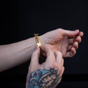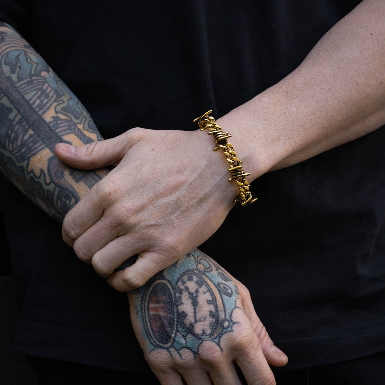 9mm Barbed Wire Cuban Bracelet (Gold)