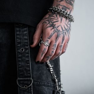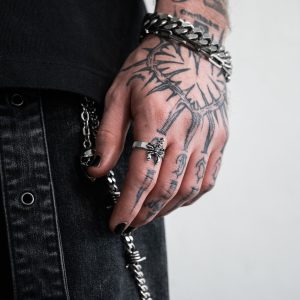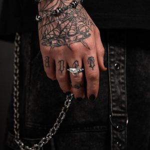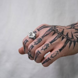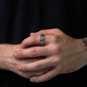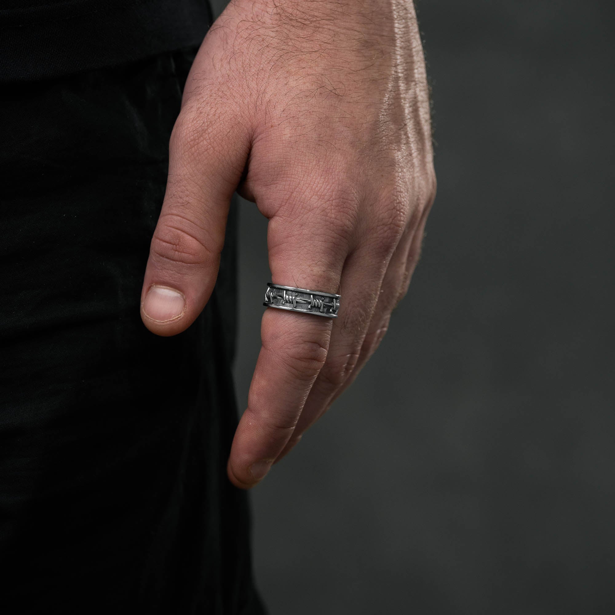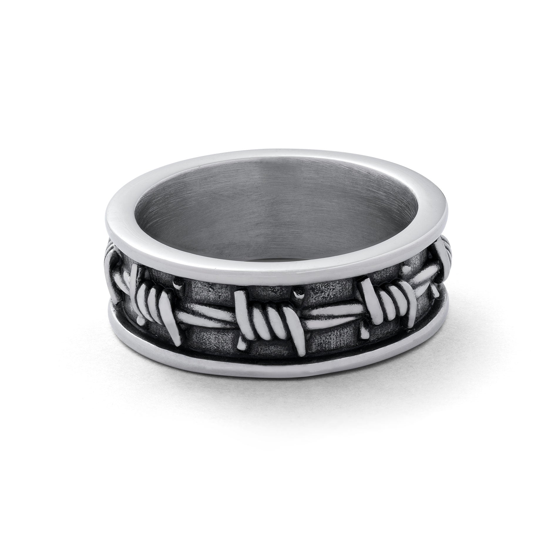 The barbed wire ring takes a classic, stackable band ring blended with the gritty edge of the Statement aesthetic.