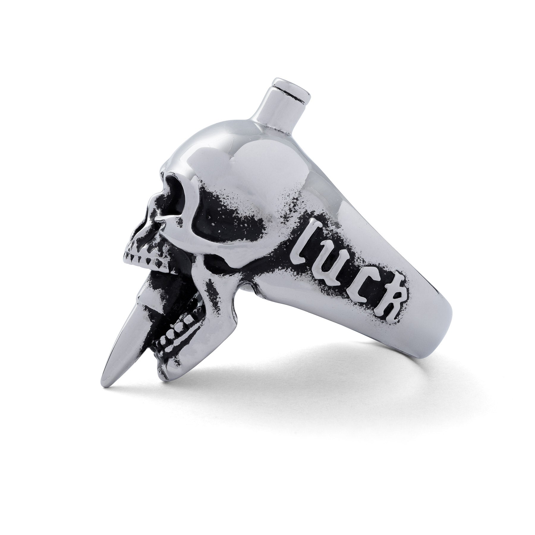 Life isn’t always easy, sometimes you cop some hard luck, other times you’re dishing it out. This bold new skull ring sums it up perfectly.