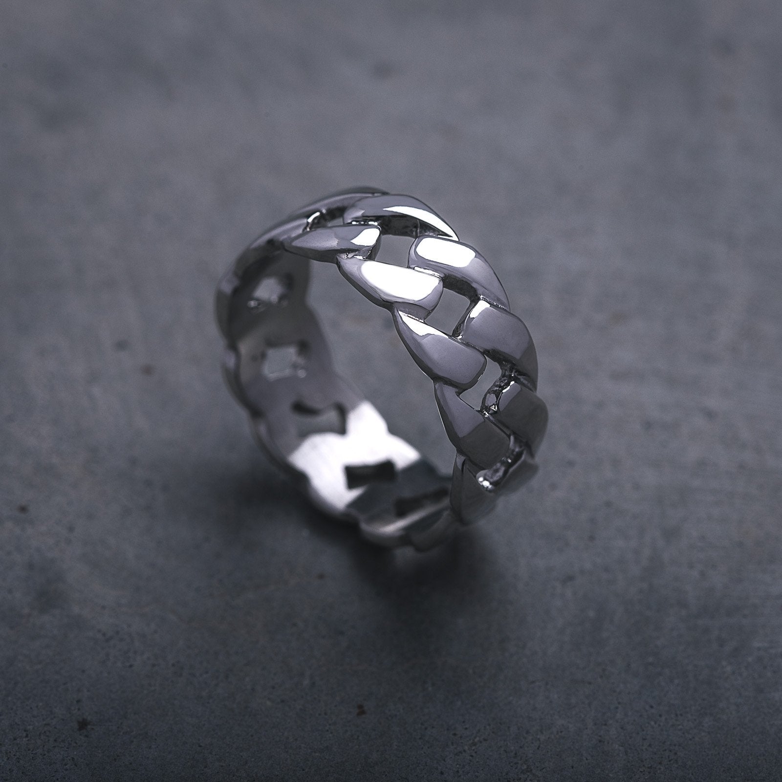 Classy, stylish cuban links formed to a band ring.