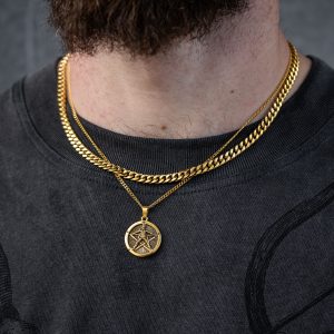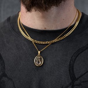 The cuban set is a timeless arrangement of our 6mm Cuban Link Chain and a pendant of your choice on a 2mm curb link chain in 18k gold.
