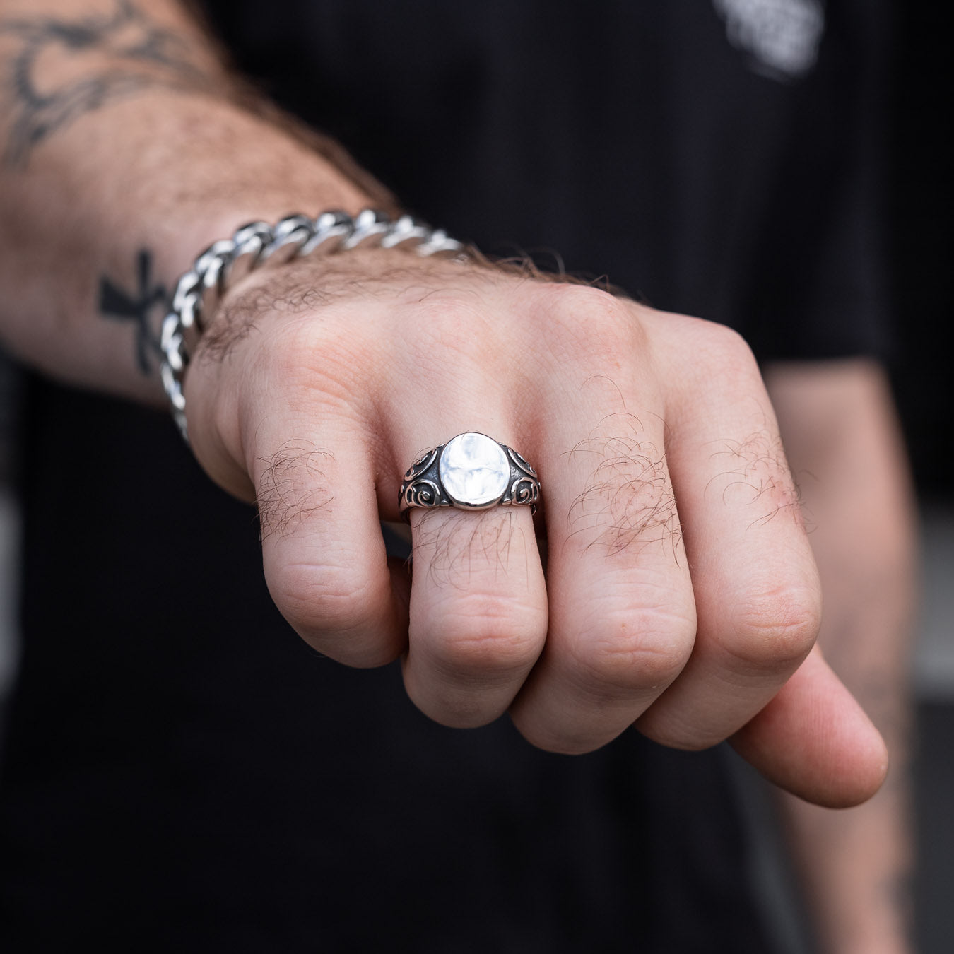 Mini Oval Scroll Signet Ring