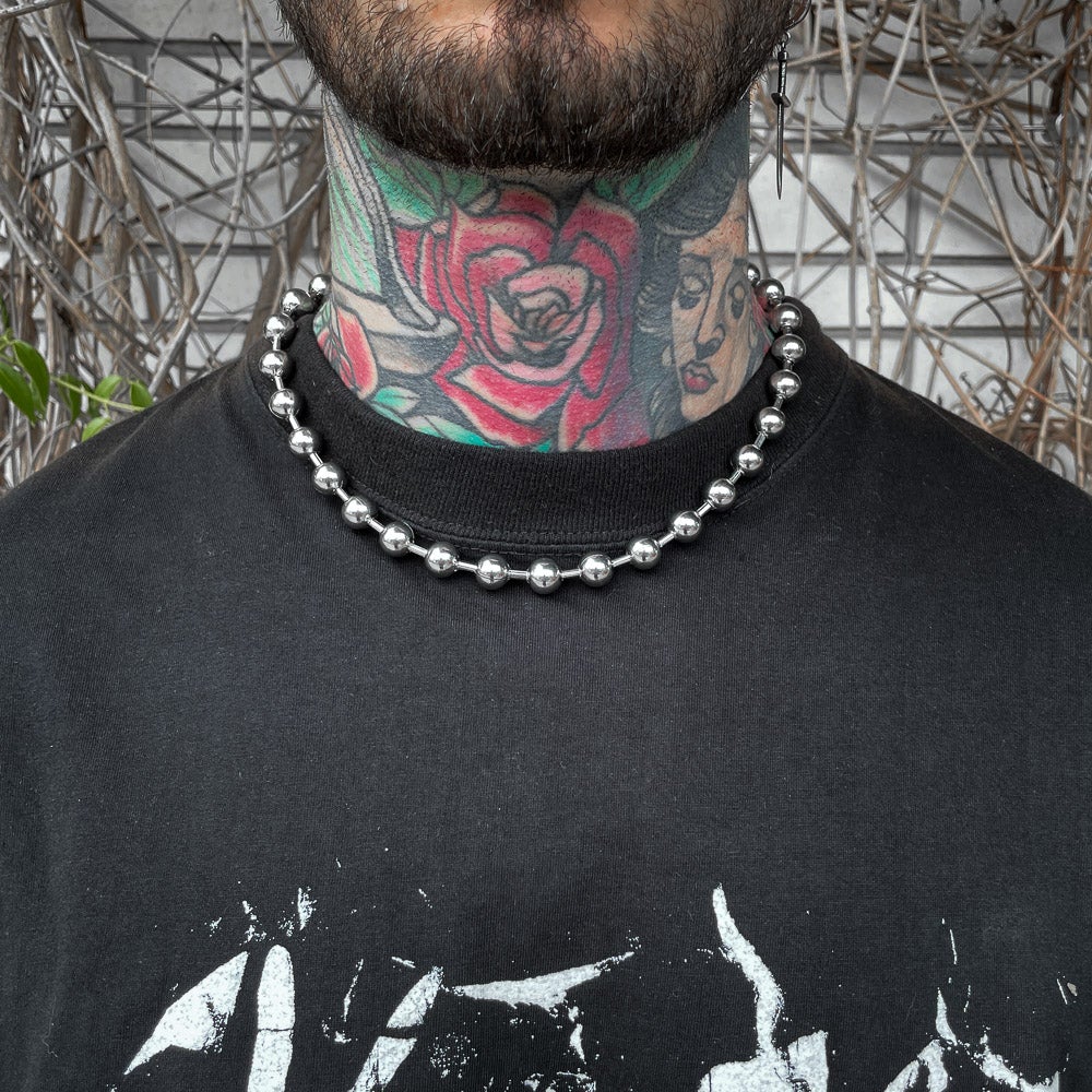 The no tourists choker chain is a bold statement piece.