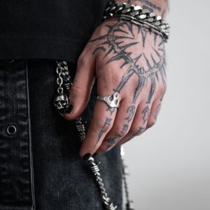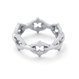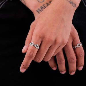 This ring boasts impeccable gothic and medieval inspired craftsmanship, meticulously forged from the distinctive spiked chain link.